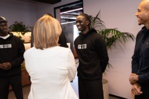 Victoria’s Premier Jacinta Allan speaking with 16 Yards staff